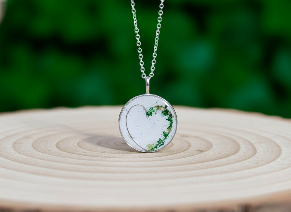 This handcrafted 20mm pendant tells a story of nourishment and growth. Featuring a preserved breastmilk stone as a backdrop of pure love, it showcases a delicate lock of baby hair carefully shaped into a heart. Adorned with a touch of greenery to represent new beginnings, this is more than jewelry—it’s a tangible connection to the bond that started it all.